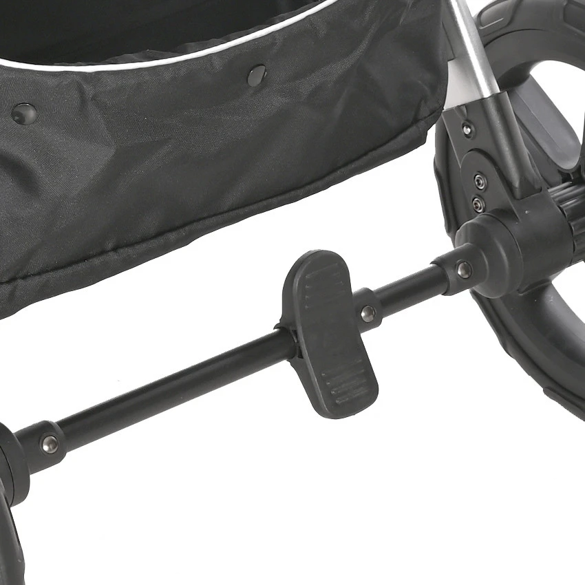 Zowel de valbeugel als duwstang zijn bekleed met PU leer, wat lekker comfortabel aanvoelt. De duwstang is verstelbaar, zodat je er altijd fijn mee kunt rijden. De centrale rem bedien je aan de achterkant van de wagen met je voet. Onderweg een boodschapje doen? Geen probleem, de Viola kinderwagen heeft een ruime boodschappenmand (max. 2 kg).